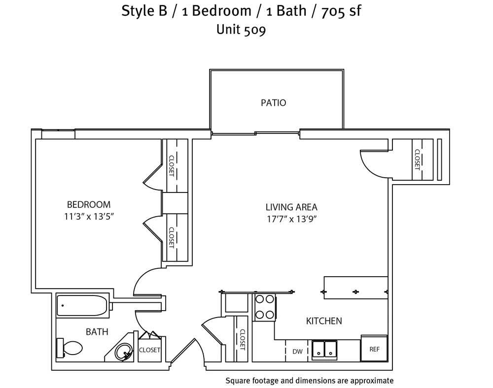 Private patio/balcony. A larger one bedroom apartment with ample living space and large closets. Some units have modern updates.